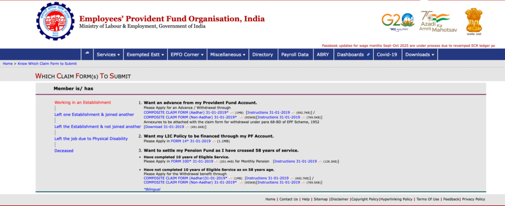 - Form 31 – For partial withdrawal (specific purposes like medical, education, housing)