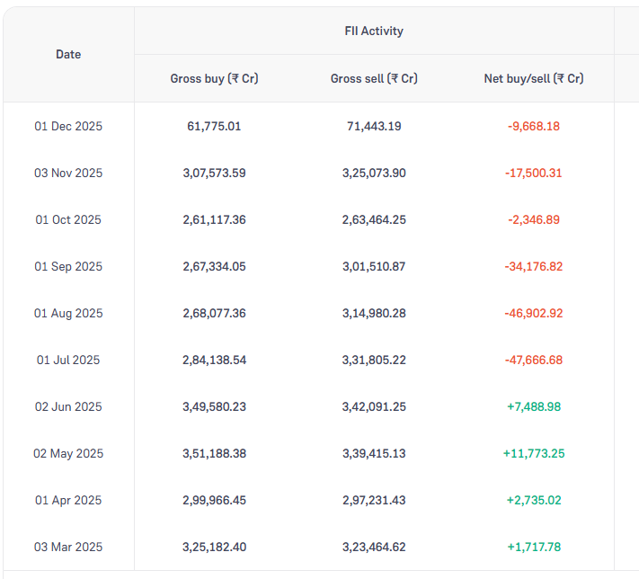 📉 Foreign Institutional Investors (FIIs) are pulling back.