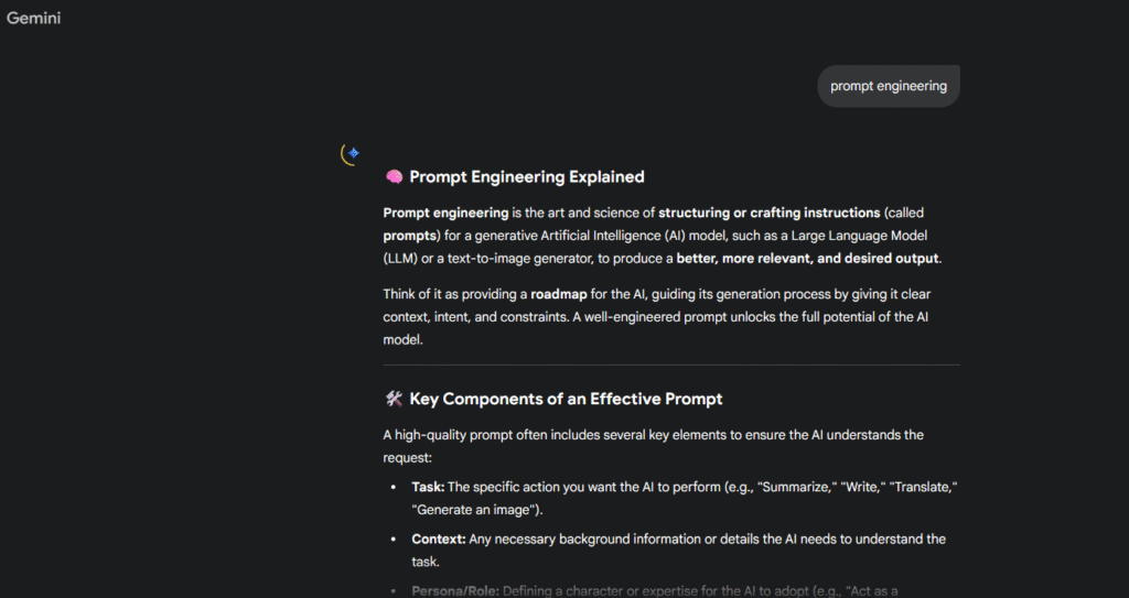 Prompt Engineering is the skill of crafting effective instructions (or prompts) that guide AI models like GPT to produce accurate, creative, and relevant outputs.